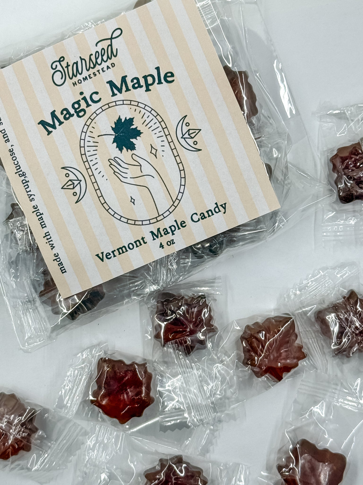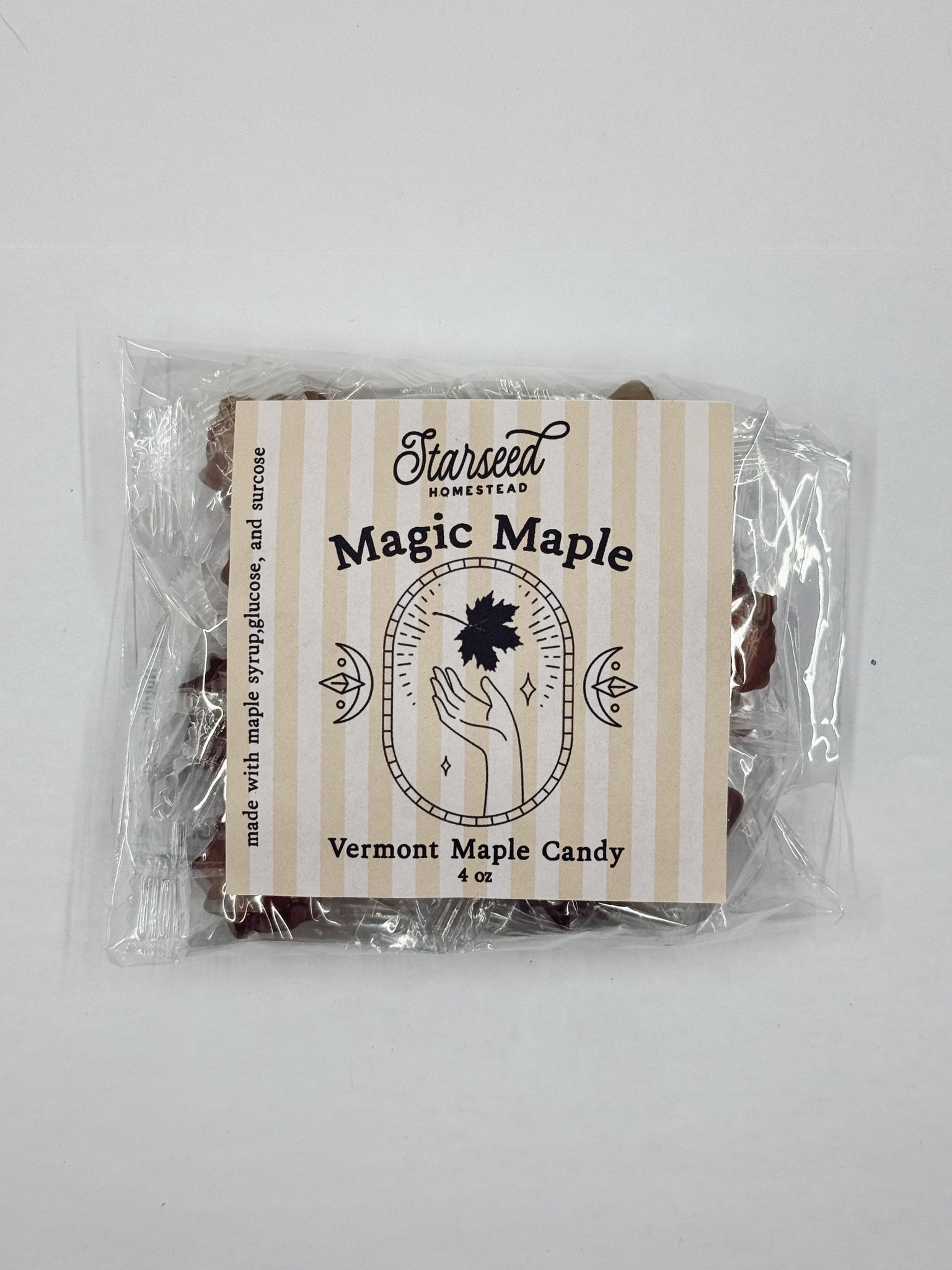 You will receive 4 oz of mouth watering Magic Maple hard candies. They are made right here in Vermont with real VT Maple Syrup. Each candy is individually wrapped.