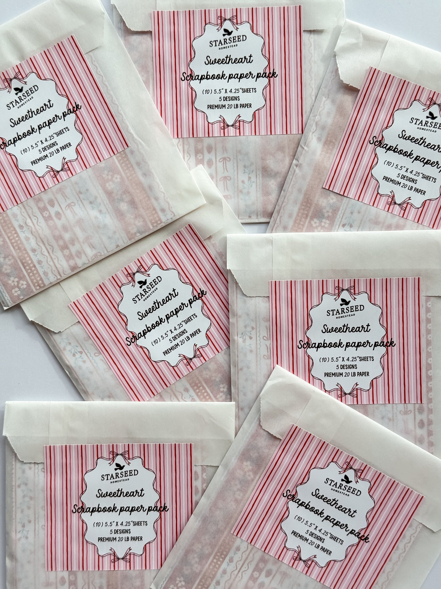 - 10 sheets with 5 designs (2 sheets of each design)
