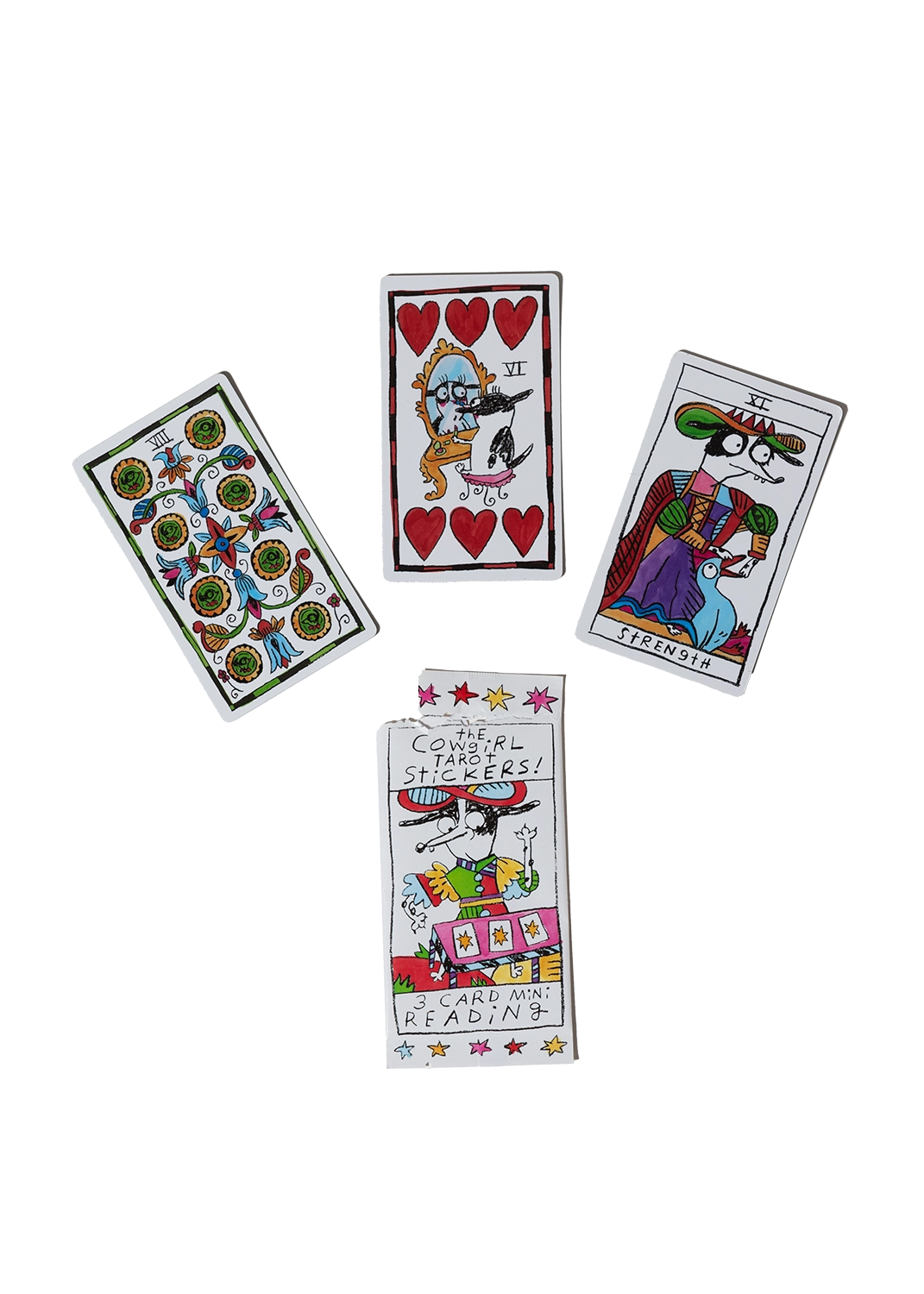 Cow girl 3-card tarot reading for you! these sticker packs have a mystery pull of 3 cow girl tarot cards...that are also stickers! a great topper for a gift or pick-me-up when you need a little guidance.