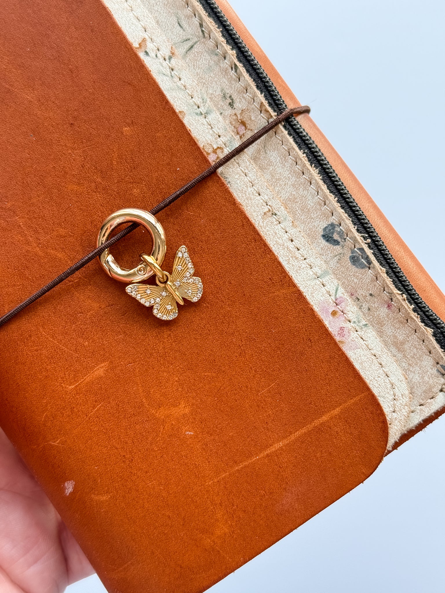 Elevate your jewelry collection with this gold plated brass butterfly charm, featuring delicate line textures and sparkling clear crystal details. Symbolizing hope and renewal, this charm adds meaningful elegance to any bracelet or necklace. Perfect for those seeking a touch of inspiration and beauty in their accessories.
