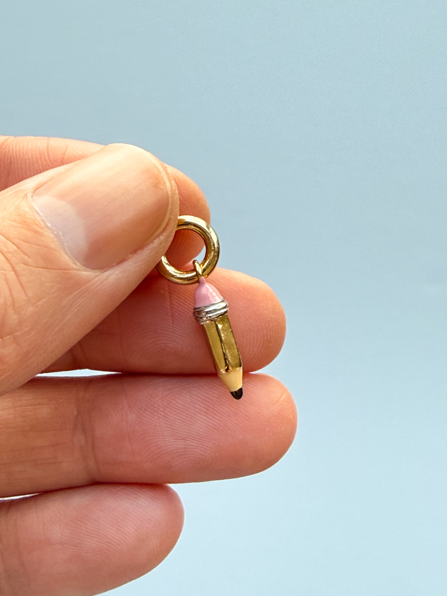A classic symbol of fresh starts and big ideas. This enamel pencil charm adds a scholastic sparkle. Complete with gold-tone detail and serious throwback vibes.
