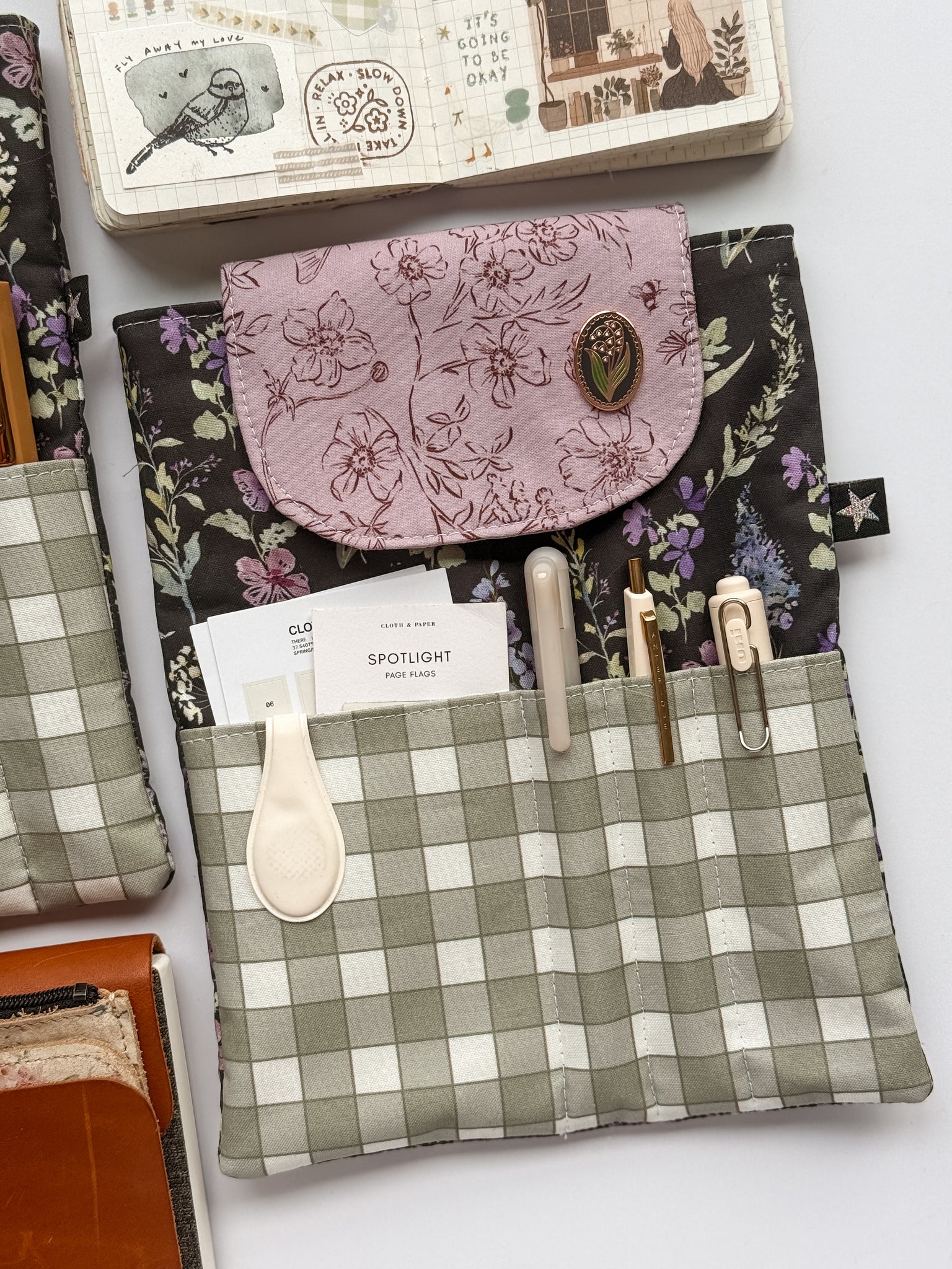 This pouch can be used in so many ways! My favorite way is to carry my a5 journal and all my pens and sticky notes. Would also make a great book pouch.