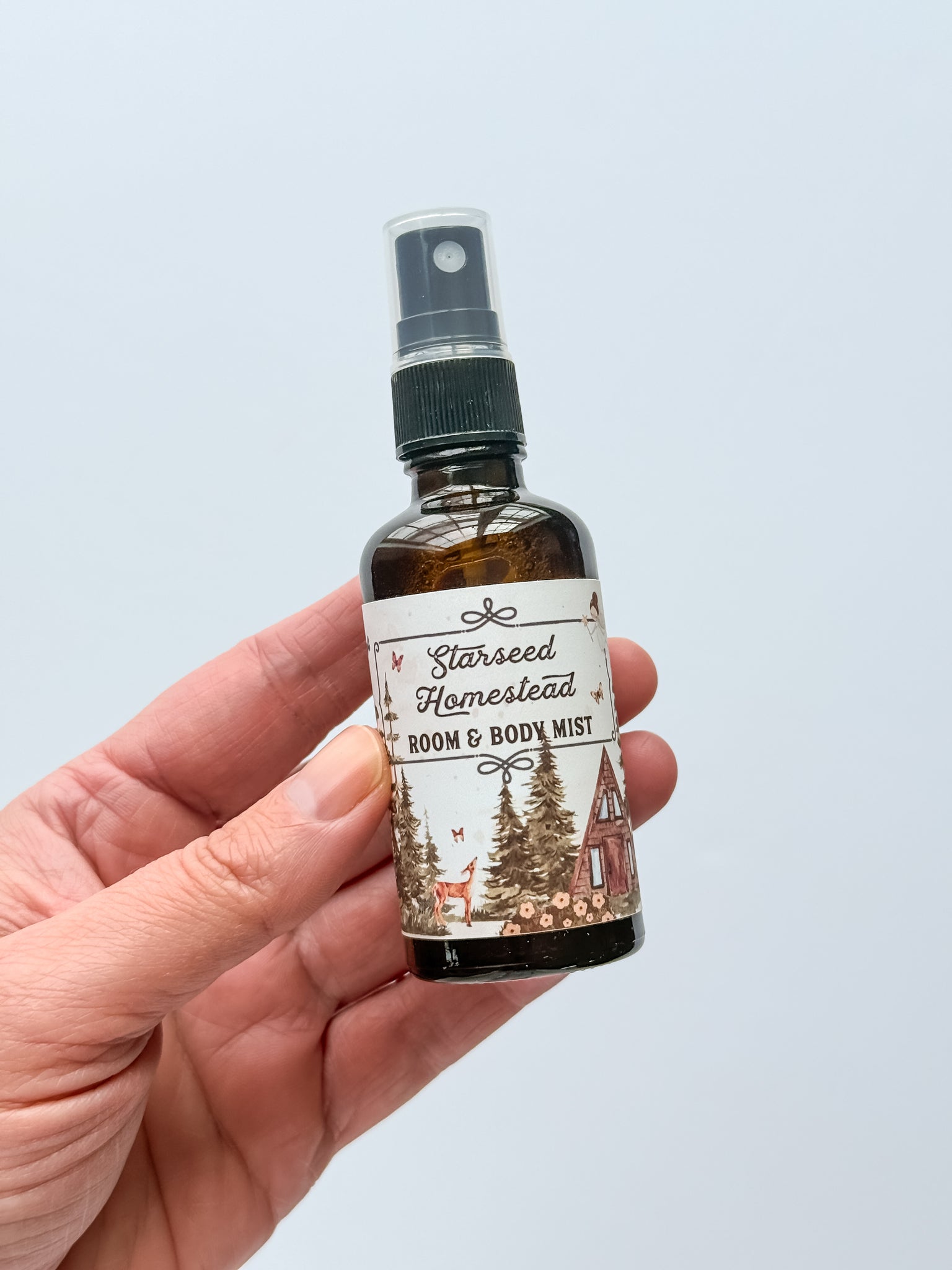 This is Starseed Hometseads signature scent and I wanted it to have a nostalgic vibe and feel like you are walking through an open air flea market with the smell of vintage furniture, bouquets of flowers, old books, cigars, sweets, and more. Its a well balanced scent that you can't quite figure out what it reminds you of. We make it in small batches with my special fragrance blend. This is such a versatile spray and can be used on the body or on the linens throughout your home.